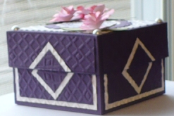 This is the measurement for the purple lid 5 1/8 x 5 1/8.  Score 1" all around.  Then make four cut. Decorate any way you like.